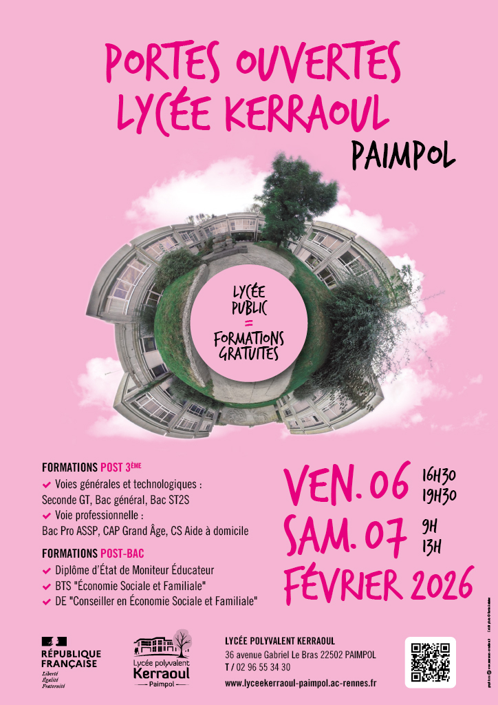 Les journées portes ouvertes du lycée auront lieu VENDREDI 6 Février 2026 de 16h30 à 19h30 et SAMEDI 7 Février 2026 de 9h à 13h
